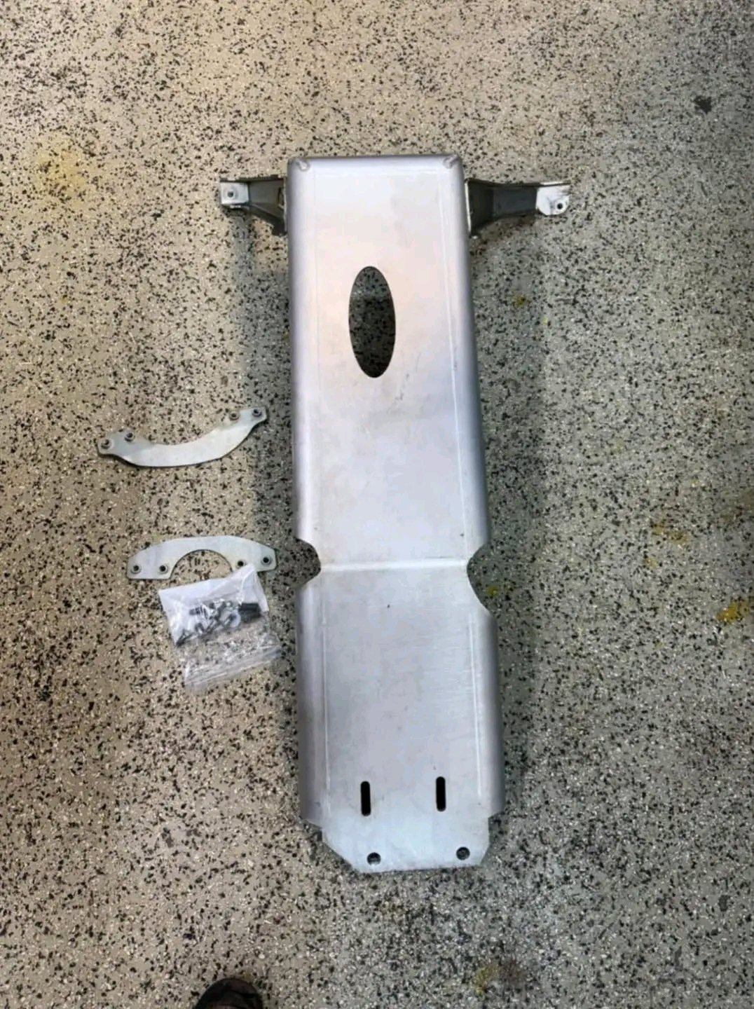 Used skid plate for the 3.6 V6 for Gladaitor or Wrangler. This covers the engine and transmission and mounts to the transmission crossmember. Super light weight and very strong. Works with longs arms too.
