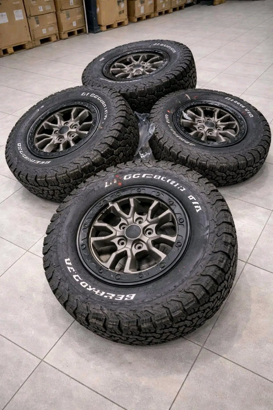 -Tires are 285/70/17 BFG K02 A/T white letter,but can be reversed to be all black letters