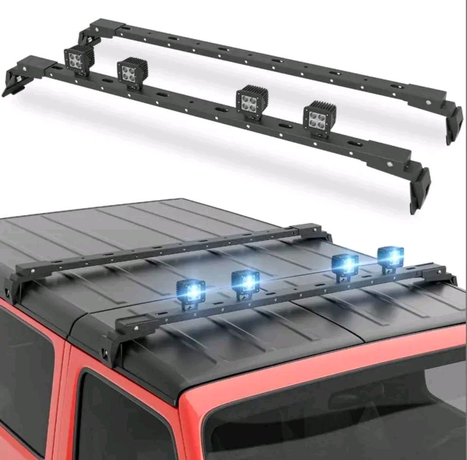 JEEP-400 LBS Roof Rack Cross Bars with 4 Pcs LED Lights 2007-2025 Jeep Wrangler JK JKU JL JLU Unlimited & Gladiator JT Hardtop, Roof Rail Crossbars Cargo Carrier Rooftop Luggage