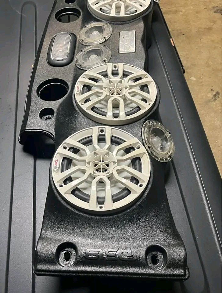 Ds18 sound bar with 8″ white marine speaker, four 4″ tweeters, nxl-x600-4d amp, comes with led mod.