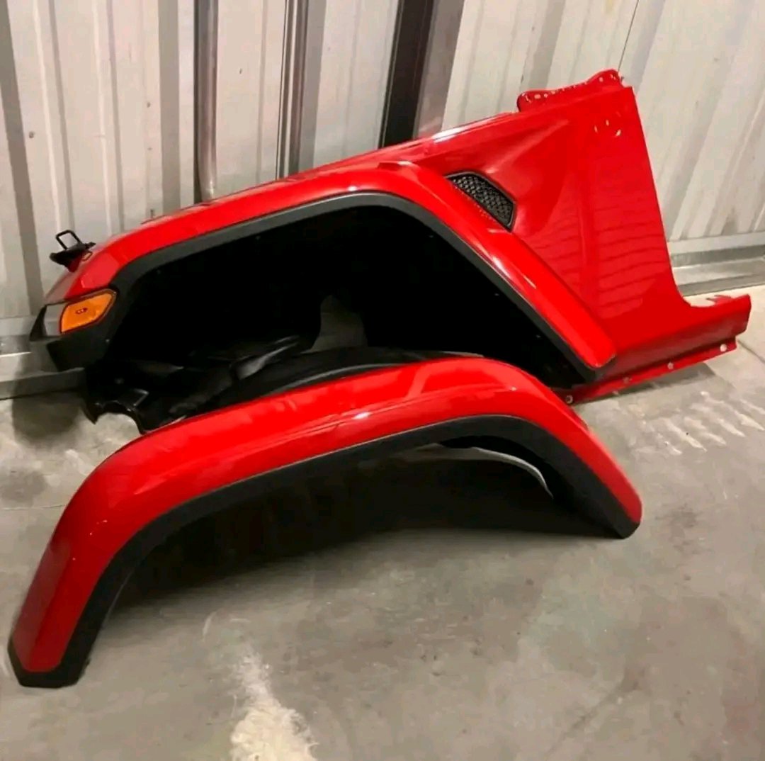These are PERFECT condition Jeep wrangler rubicon OEM fenders in Firecracker Red