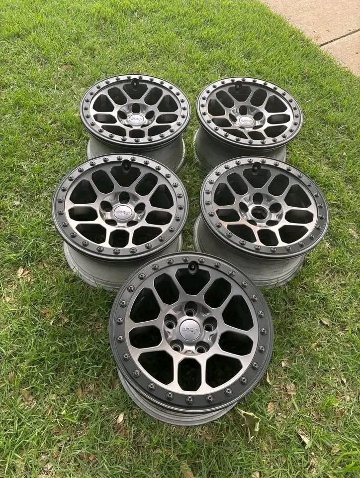 17 inch wheels removed off of a Jeep Wrangler Rubicon that came from the factory with the Xtreme Recon package… these are the highly sought after 25 bolt first generation XR wheels in Agate (Dark Gray) Not the Bronze version off a 392 ….. these are the Beadlock capable wheels that are 17×8… see pictures….. wheels are in really nice condition …
