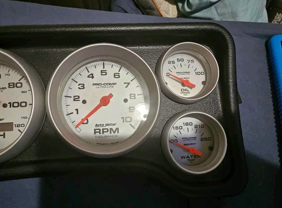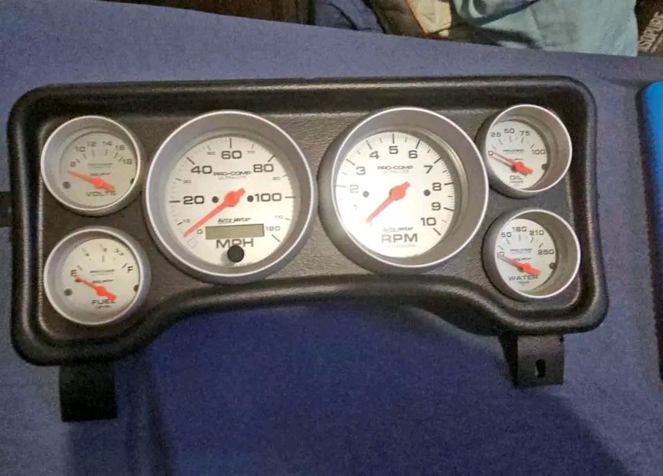 Complete aftermarket cluster with AutoMeter gauges