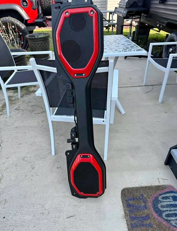 Soundbar out of a 2023 Jeep Wrangler JL- red outline is decorative and can come off. Great condition.