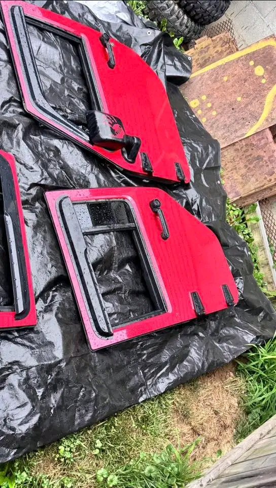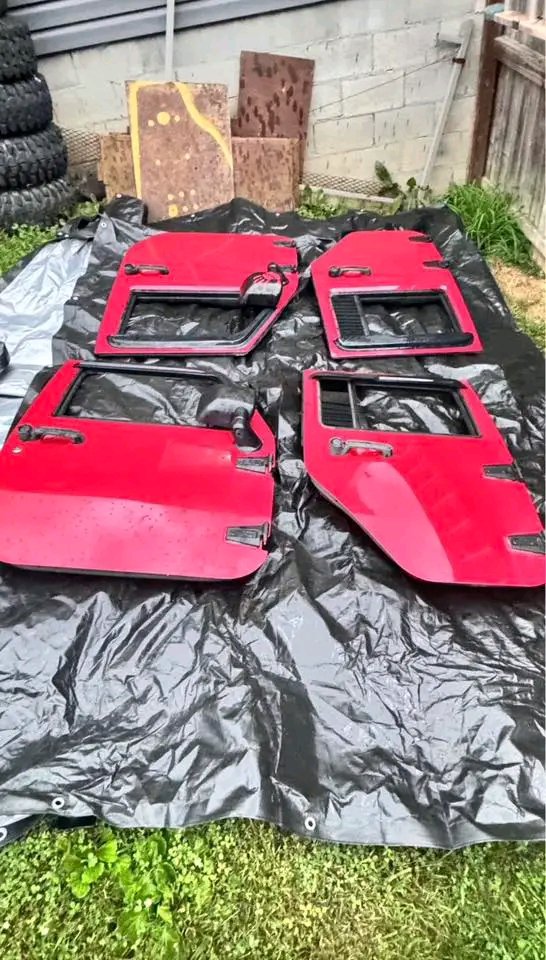 4 jeep wrangler unlimited jeep doors off a 2011, color is flame red. Power door locks and windows, work perfectly!